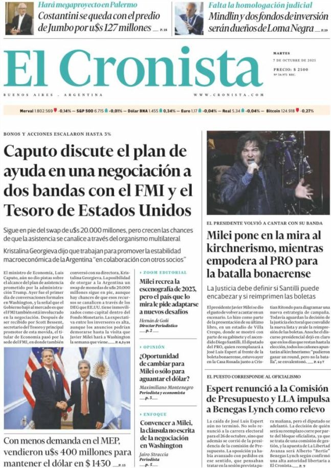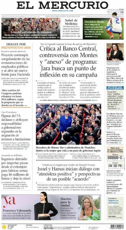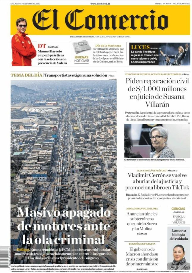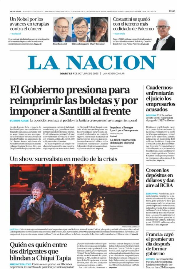 07 Oct 2025, 10:49 • 1 minuto de lectura Portadas latinoamericanas de este martes 7 de octubre de 2025 Por La Patilla Compartir Compartir noticia Facebook Twitter / X WhatsApp Telegram LinkedIn Copiar enlace Enlaces relacionados Ver noticia original