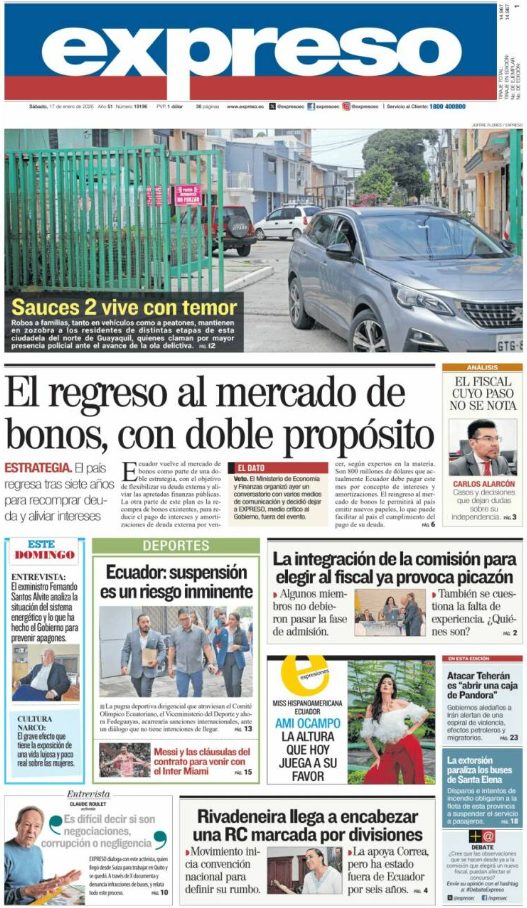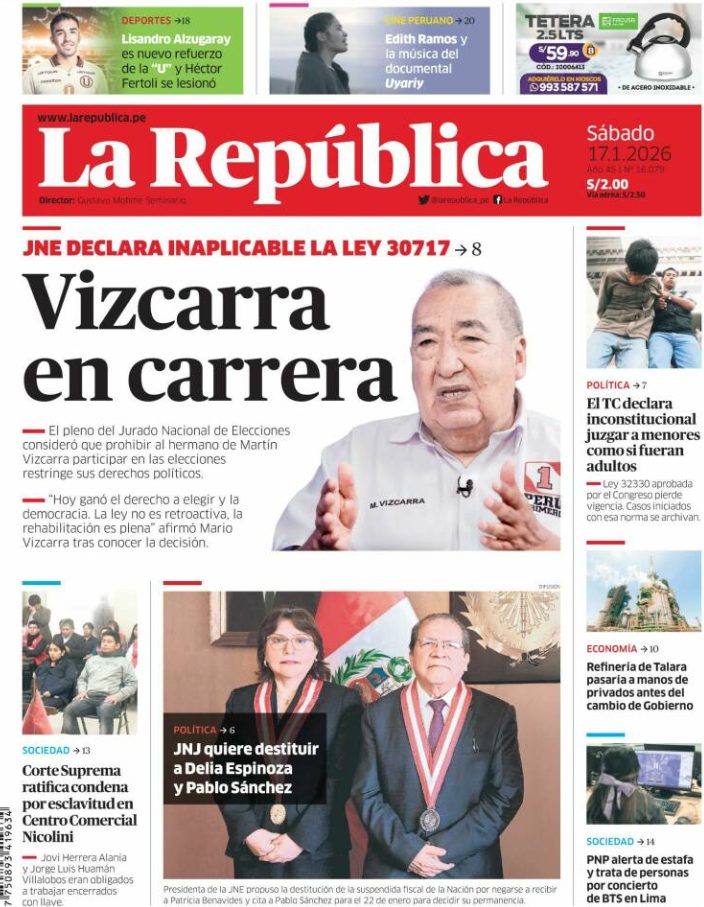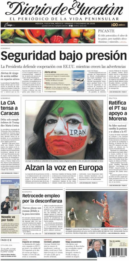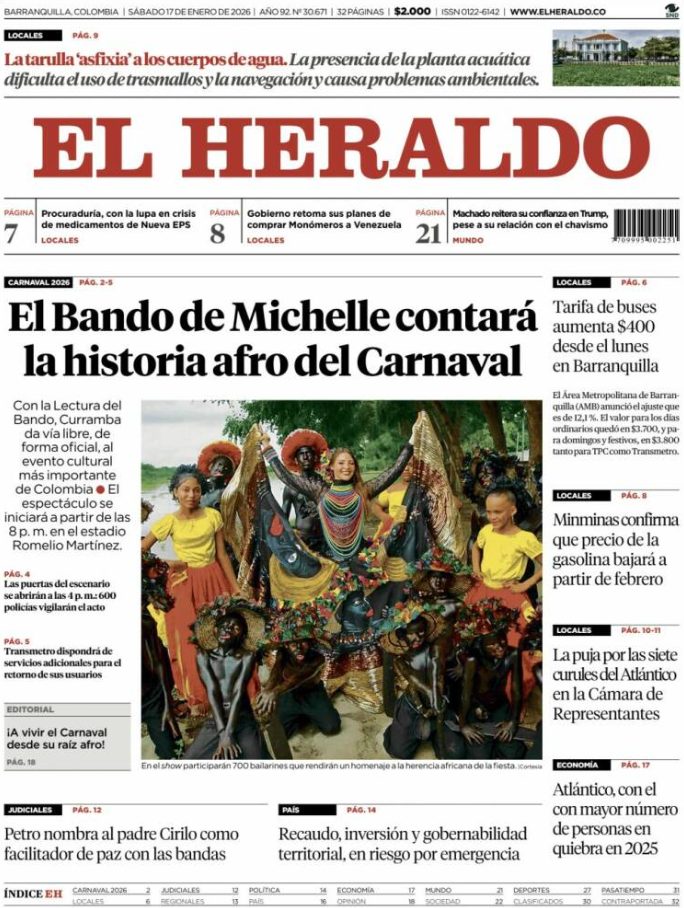 17 Jan 2026, 10:58 • 1 minuto de lectura Portadas latinoamericanas de este sábado 17 de enero de 2026 Por La Patilla Compartir Compartir noticia Facebook Twitter / X WhatsApp Telegram LinkedIn Copiar enlace Enlaces relacionados Ver noticia original