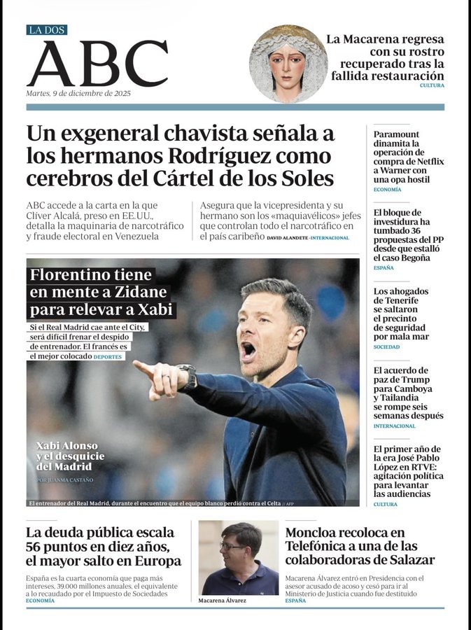 08 Dec 2025, 22:12 • 1 minuto de lectura Segundo bombazo: Explosiva CARTA del ex general Cliver Alcalá Cordones al presidente Donald Trump DESTACADA Por La Patilla Compartir Compartir noticia Facebook Twitter / X WhatsApp Telegram LinkedIn Copiar enlace Explosiva carta del general Cliver Alcalá Cordones al presidente Donald Trump. ¡¡¡Noticia en desarrollo!!! Enlaces relacionados Ver noticia original