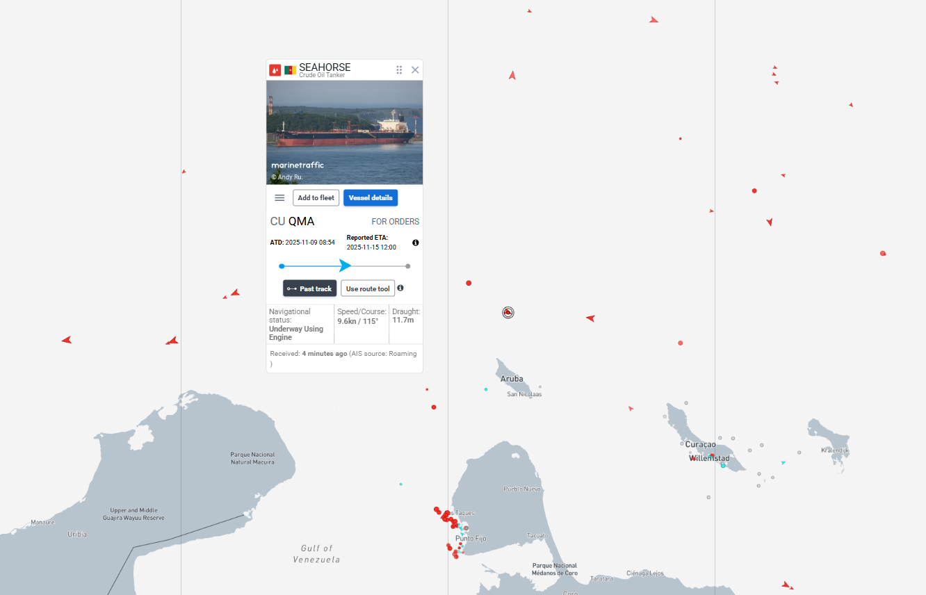 Según el monitor digital MarineTraffic, actualmente el Seahorse se encuentra al norte de Aruba, con el Terminal de Jose en el estado Anzoátegui como probable destino. Su trayectoria anterior había tomado un pronunciado desvío justo encima del Golfo de Venezuela.