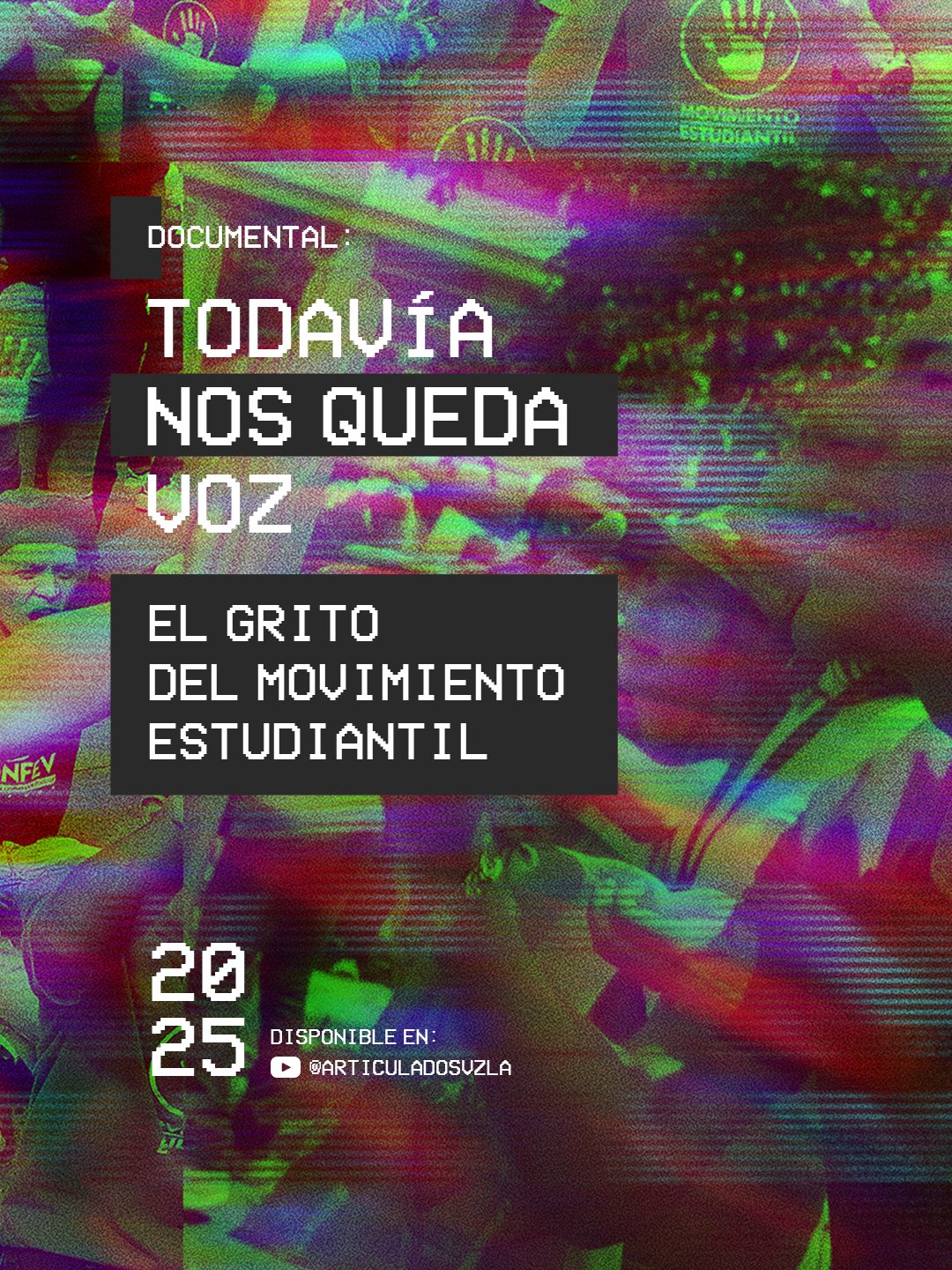 El pasado 22 de septiembre, articulaDOS Venezuela lanzó en todas sus redes sociales el documental «Todavía nos queda voz: El Grito del Movimiento Estudiantil», una producción que recoge el coraje, la memoria y la persistencia de quienes, desde las aulas y las calles, han alzado su voz por la democracia en Venezuela.