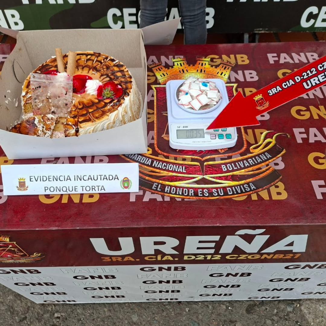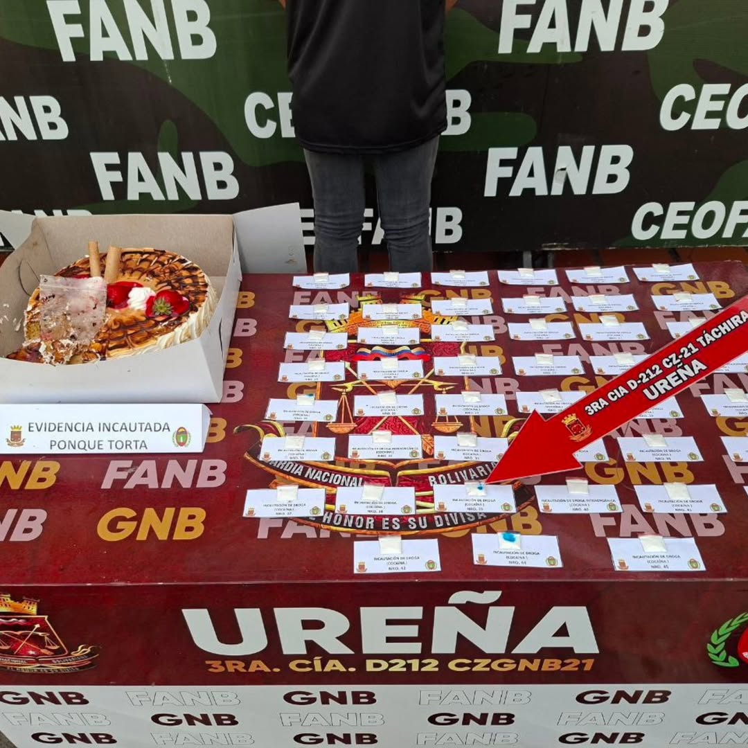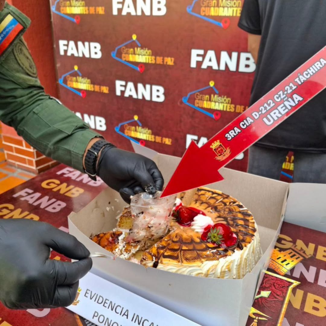 Funcionarios de la Guardia Nacional Bolivariana (GNB) detuvieron este sábado a un hombre que trasladaba cocaína oculta dentro de una torta de cumpleaños, desde la frontera con Colombia hacia el municipio Pedro María Ureña, en el estado Táchira.