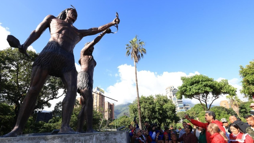 Este domingo 12 de octubre, cuando históricamente se celebra el «Día de la Raza», y rebautizado por Chávez como «Día de la Resistencia Indígena, Nicolás Maduro ordenó cerrar todo el paso vehicular en la principal autopista de Caracas, la Gran Cacique Guaicaipuro (antes Francisco Fajardo), para inaugurar dos estatuas que los venezolanos vinculan con la «brujería».